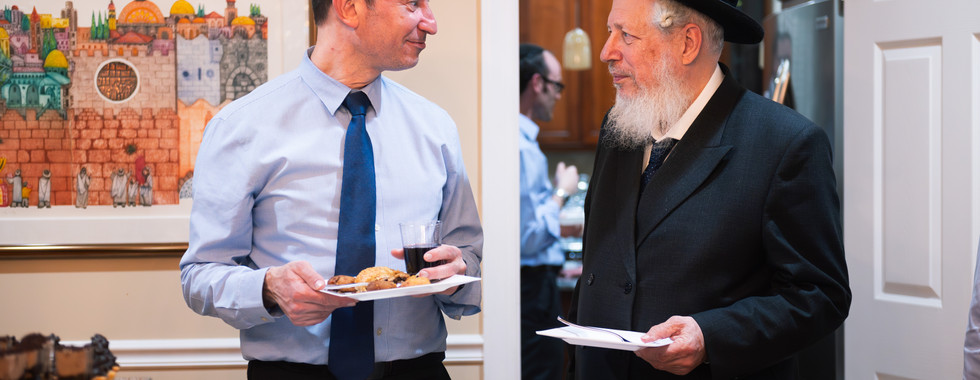 On Tuesday, December 19th, alumni in the New Jersey area gathered at the home of Dr. Yosi and Lisa Fishkin to welcome our new Rosh HaYeshiva, Rabbi Moshe Revah and wished a tzeischem l’shalom to Rabbi Chaim Twerski, who will be making Aliyah after 40+ years of teaching at HTC. Participants enjoyed their evening reminiscing over a beautiful fleishig buffet and heard updates about the excitement happening at HTC. Rabbi Josh Zisook, Director of Alumni Affairs, opened the program, followed by Divrei Torah from the Rosh HaYeshiva and then Divrei Bracha by Rabbi Twerski. Special thank you to the Fishkins for opening their home to our Yeshiva!